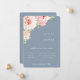 Beautiful blush pink watercolor floral arrangement, wedding invitation. Modern and chic white typography design. Background color shown in dusty blue, can be customized.