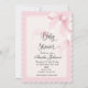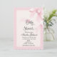 This baby girl shower invitation features a delicate blush pink bow ribbon. It is beautifully adorned with modern calligraphy in a sophisticated blush color, creating a timeless and graceful design. This invitation is perfect for setting the tone for a memorable celebration.