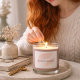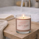 Feminine minimalist styling with a taupe wrap and ivory label, accented by blush brushstroke petals and clean typography reading “Serenity Blooms.” The soft neutral palette suits bedside tables, bathroom counters, or open shelving as part of a layered home routine.