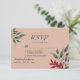 This elegant fall RSVP card features a soft blush background accented with burgundy and green watercolor foliage. The design perfectly matches autumn and winter wedding themes, making it easy for your guests to reply with their attendance and meal preferences.