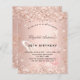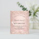 For an elegant 50th (or any age) birthday party. A rose gold background. Decorated with rose gold confetti and a large butterfly. Personalize and add a name and party details. The name is written with a hand lettered style script