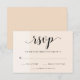 These modern wedding RSVP cards feature soft shades of blush, bisque, and linen with trendy black typography.