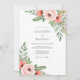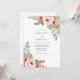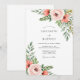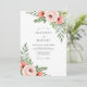 This design features a romantic watercolor palette of soft blush pink and vibrant coral. Lush rose blooms and delicate anemones are nestled among airy sage green eucalyptus leaves and greenery sprigs. The aesthetic is light and ethereal, making it ideal for a bright spring or summer outdoor event. These botanical elements create a graceful arrangement that feels both timeless and fresh.