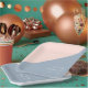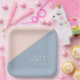 These dusty blue and blush pink minimalist, elegant, monogrammed wedding paper plates can be personalized with your information in modern typography. Designed by Thisisnotme©