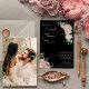 Yes, you can print on the back of your invitation for free! Most designs already have a corresponding design on the back that can be personalized using the Design Tool and going to Layers. This is a great way to communicate more information or further personalize your Blush Floral Black Photo Were Engaged Invitation. The option is really up to you.
