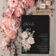 This blush floral black wedding details enclosure card design features beautiful chic neutral backgrounds of black or white with simple modern typography and elegant calligraphy to set a sophisticated tone for any style of event. Each product is embellished with gorgeous blush pink roses and peach and ivory hydrangeas arranged with lush eucalyptus and greenery leaf details, along with timeless geometric gold frames for a luxurious look. Mix and match this coordinating collection for an effortless personalized dream wedding aesthetic for a wide range of casual to formal styles. For more coordinating designs, this design is also available in pastel pink and navy blue. As with all of our design, if you have any questions or special requests please just ask.