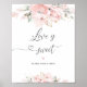 Blush pink roses floral bridal shower "Love is sweet" Poster. Blush gold Bridal shower table sign.