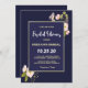 Blush Floral Gold Frame Navy Blue Bridal Shower Invitation