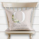 A beautiful, elegant keepsake baby girl birth stats throw pillow. This pillow features a beautiful blush pink background, and the baby's name initial O in white, and decorated with beautiful watercolor white roses and eucalyptus greenery. The baby's name is written below in hand lettered script typography, followed by baby's birth date and birth statistics. The design is the same on both front and back. Would make a beautiful addition to baby's nursery! Copyright Personalized Home Decor, all rights reserved.