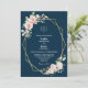 Blush Floral Navy Simple Monogram Details Wedding Invitation