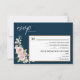 This blush floral navy wedding menu rsvp card design features beautiful chic classic backgrounds of pastel pink and navy blue with simple modern typography and elegant calligraphy to set a sophisticated tone for any style of event. Each product is embellished with gorgeous blush pink roses and peach and ivory hydrangeas arranged with lush eucalyptus and greenery leaf details, along with timeless geometric gold frames for a luxurious look. Mix and match this coordinating collection for an effortless personalized dream wedding aesthetic for a wide range of casual to formal styles. For more coordinating designs, this design is also available in white and black. As with all of our design, if you have any questions or special requests please just ask.