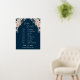 This blush floral navy wedding order of events sign design features beautiful chic classic backgrounds of pastel pink and navy blue with simple modern typography and elegant calligraphy to set a sophisticated tone for any style of event. Each product is embellished with gorgeous blush pink roses and peach and ivory hydrangeas arranged with lush eucalyptus and greenery leaf details, along with timeless geometric gold frames for a luxurious look. Mix and match this coordinating collection for an effortless personalized dream wedding aesthetic for a wide range of casual to formal styles. For more coordinating designs, this design is also available in white and black. As with all of our design, if you have any questions or special requests please just ask.
