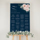 This blush floral navy wedding seating chart sign design features beautiful chic classic backgrounds of pastel pink and navy blue with simple modern typography and elegant calligraphy to set a sophisticated tone for any style of event. Each product is embellished with gorgeous blush pink roses and peach and ivory hydrangeas arranged with lush eucalyptus and greenery leaf details, along with timeless geometric gold frames for a luxurious look. Mix and match this coordinating collection for an effortless personalized dream wedding aesthetic for a wide range of casual to formal styles. For more coordinating designs, this design is also available in white and black. As with all of our design, if you have any questions or special requests please just ask.