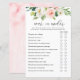 Blush Floral Over or Under Bridal Shower Game Card