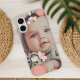 Add a favorite photo to this chic and simple phone case accented with springy blush pink flowers at the corners.