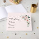 This blush floral pink wedding guest book design features beautiful chic classic backgrounds of pastel pink and navy blue with simple modern typography and elegant calligraphy to set a sophisticated tone for any style of event. Each product is embellished with gorgeous blush pink roses and peach and ivory hydrangeas arranged with lush eucalyptus and greenery leaf details, along with timeless geometric gold frames for a luxurious look. Mix and match this coordinating collection for an effortless personalized dream wedding aesthetic for a wide range of casual to formal styles. For more coordinating designs, this design is also available in white and black. As with all of our design, if you have any questions or special requests please just ask.