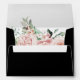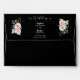 This blush floral simple black wedding envelope design features beautiful chic neutral backgrounds of black or white with simple modern typography and elegant calligraphy to set a sophisticated tone for any style of event. Each product is embellished with gorgeous blush pink roses and peach and ivory hydrangeas arranged with lush eucalyptus and greenery leaf details, along with timeless geometric gold frames for a luxurious look. Mix and match this coordinating collection for an effortless personalized dream wedding aesthetic for a wide range of casual to formal styles. For more coordinating designs, this design is also available in pastel pink and navy blue. As with all of our design, if you have any questions or special requests please just ask.