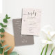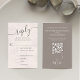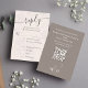 This blush wedding RSVP card combines elegance and functionality with a QR code response option for modern convenience. Designed with watercolor floral accents and a classic meal choice section, it blends simple typography with elegant calligraphy script for a timeless look. Perfect for couples seeking a classy and sophisticated design to complement their wedding stationery suite.