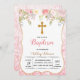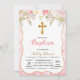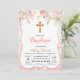 Blush flower glitter baptism party invitation