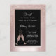 On a background of blush pink metallic foil, our elegant 50th Birthday party invitation features a feminine blush glitter ombre overlay with bubbling champagne glasses toasting the Big 5-Oh! birthday honoree. In a black frame with a blush foil border, you'll find example invitation text that you can easily revise on the personalization template. On back of the postcard, you find sample text for a return address, a personal message, and a signature in a script font.