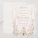 Blush and gold arched layout with soft florals, layered arch lines, and a tiered cake detail on a warm ivory background. Refined botanical styling suits bridal showers, garden tea gatherings, and upscale daytime celebrations with a polished, feminine setting.