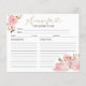 Blush Gold Floral Bridal Tea Party Recipe Cards
