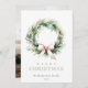 Blush Green Christmas Wreath Watercolor Photo Holiday Card