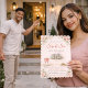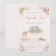 Blush floral home gathering design featuring soft rose borders, champagne glasses, and key detail with a centered home illustration. Clean serif and script typography in warm neutral tones, suited for hosting a new home sip and see with drinks and guided home tour.