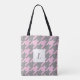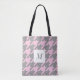A modern take on a traditional oversized houndstooth pattern in pink and gray with custom monogram on both sides.