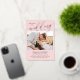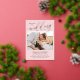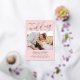 Simple and beautiful double sided two in one photo wedding invitation with your photos and a blush pink background. Join us for the wedding of is written at the top of the photo wedding invite, with wedding in a beautiful calligraphy script printed in rose gold foil. Your names in rose gold foil too. On the other side, add another photo and additional wedding information your guests will need.