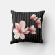 Blush Magnolias on Black Stripes Throw Pillow