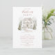 An elegant holiday invitation featuring a hand-painted blush manor adorned with evergreen garlands and winter trees. The soft pastel tones and refined architecture evoke timeless charm and warmth — perfect for hosting a sophisticated Christmas party or festive family gathering in style.