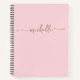Girly Blush Pink Glam Gold Monogram Name Script Signature Custom Personalized Notebook. These design featuring your first name in a pretty hand lettered style swash tail font calligraphy (or typography) in gold color on baby pink or light blush pink color background. Easy to customize and can be used as a Diary Planner, Sketchbook, Cookbook, Journal and more. Also great stylish feminine gift for bridal shower, mother’s day, birthday, wedding, sweet 16 birthday party and baby shower, business, graduation, back to school, professional work and for anyone who loves feminine minimalist style.