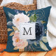 Blush & Navy Flowers Blue Monogrammed Throw Pillow