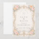 A romantic baroque frame adorned with blush and peach roses, soft ivory blossoms, and delicate greenery. Sculpted champagne scrollwork creates an elegant, symmetrical silhouette that feels timeless and refined. The airy pastel palette keeps the design light while preserving a regal European charm. Perfect for a quinceañera celebration that blends tradition, femininity, and graceful sophistication.