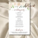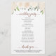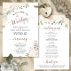 These wedding programs are elegant and tasteful, while still being budget friendly. The design features a bevy of hand painted watercolor roses and flowers in shades of champagne, blush, and pale peach surrounded by eucalyptus leaves and garden foliage. The typography features lacy script calligraphy, and there is room for details on the ceremony, the bridal party, and a short thank you.