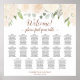 This lovely wedding seating chart features a beautiful boho chic floral design with hand painted watercolor roses and blossoms in neutral earth tone pastel shades of champagne blush or pale peach along with sprigs of eucalyptus leaves and foliage. The elegant script calligraphy title reads: Welcome! Please find your table, and there is space for the couple's names and wedding date at the bottom. With space for 170 guests at 17 tables (10 seats per table) this seating chart will make it easy for your guests to find their seats while adding beauty, style, and grace to your wedding reception.