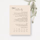 This chic and modern wedding details enclosure card features a fully customizable text and a visual timeline for the order of the day. A contemporary set of fonts in a brown-black font is set against an elegant blush peach background. This card forms part of a modern minimalist wedding collection of easy to use, mix and match neutral-colored stationary for all seasons.