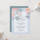 Blush Peach PEONIES Blue Wedding Invite Reception
