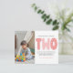Modern, simple and elegant girl second birthday thank you postcard. Design featuring blush pink typography two , thank you message and a photo.