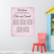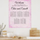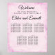 Blush pink watercolor 5-table Wedding Seating Chart. Welcome and the wedding couple names are written in an elegant and classic script font. All text can be editied. The blush pink watercolor wash background has a subtle edge to define your sign.