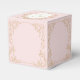 This small favor box has a blush pink exterior and a decorative square frame on each side. Your names and wedding date are surrounded by a laurel wreath on the top flap in a golden font. This favor box coordinates with the other products in the Vintage Pink Paris Glam Wedding Collection.
