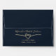Add a refined touch to your wedding suite with this elegant navy blue and blush pink 5x7 envelope. The design features a romantic gold rope heart and modern calligraphy return address, combining timeless charm with a contemporary aesthetic. Ideal for mailing wedding invitations in style, this envelope offers both sophistication and personalization. A perfect match for modern, romantic, or navy-themed weddings.