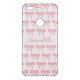 Cute coquette aesthetic striped bow Google Pixel phone case. Add your own name or choice of text. Featuring hand illustrated tied bows with rose pink and cream stripes. Set on soft cream background. Matching items available. Original art from artists own illustrations. Please use the message me button below for help with further customization and special requests. © Zoe Chapman Design