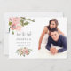 Blush pink and rose gold rose watercolor wedding save the date photo cards with accents of sage green.