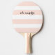 This stylish ping pong paddle features blush pink and white stripes, and your name in modern black calligraphy.