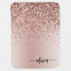 Blush Pink - Rose Gold Foil Sparkle Glitter Brushed Metal Monogram Name Baby Girl Blanket for a Mother to Be Baby Shower. The blanket makes the perfect baby shower gift for someone decorating her room in chic modern and elegant luxury style.