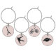 Ooh la la! Sip your Bordeaux in style with our Paris inspired wine charms. A sweet hostess gift, set includes silhouettes of the Eiffel tower, a bird, a bicycle and a croissant in black on a blush pink background.