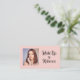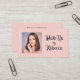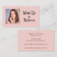 Blush Pink Black Script Photo Makeup Business Card with customized photo and your business details on the back in easy-to-read black text.