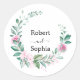 Blush Pink Bloom Wedding Classic Round Sticker, minimalist style which can be easily updated with your photo and text. If you need any help personalizing this product. Please contact me using this message button below and I will be happy to help.